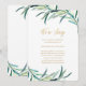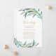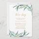Denna enkla salvia gröna och vita botaniska bröllopsförseningsnotis är ett enkelt och sött sätt att låta inbjudna gäster veta att ceremonin har skjutits upp på grund av oförutsedda händelser. Denna trendiga design har vacker "vi är ledsna"-kaligrafi i falskt guld och vackra vattenfärgblad.