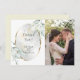 TACK FÖR BILDEN | Lägg till ditt foto i denna akvarellram med elfenbensvita gula och rosafärgade rosor och akvarellblad i en pärlfärgad genomskinlig guldkant. Blommorna syns igenom den genomskinliga pärlfärgade ramen, med grönska vid de diagonala hörnen. Baksidan har en kompletterande koordinerad färg. Anpassa text, typsnitt, färg och storlek. Originalkonst skapad för BarefootBride™ av © WhimsicalArtwork™ - Detta är en del av en komplett brölloppspresentationsserie med matchande bröllops-, baby shower- och andra evenemangskort.