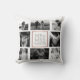 Denna bröllopsminnesskudde har en fotokollage med svartvita foton på framsidan och färgfoton på baksidan. Anpassa denna kudde med ditt namn och dina foton.