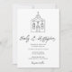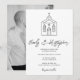 Charmig “gå till kapellet”-design med ett handritat brölloppskapell i svart och vitt. Perfekt för romantiska, minimalistiska brölloppsserier, brölloppsmaterial och coquette-inspirerade firanden.
