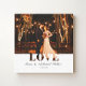 Visa din speciella dag från din bröllopsfest med denna eleganta och enkla design med typografi av ordet KÄRLEK och anpassningsbara namn skrivna i en vacker scriptfont. Perfekt som bröllopsgåva till bruden och brudgummen. En vacker minnessak för ett nygift par.