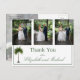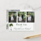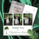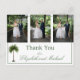 Ett elegant Palm Tree bröllopsfoto tackkort. Ett elegant palmträd är i bakgrunden.