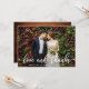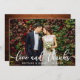Modern Script Bröllopsfoto Tacksamhetskort - Kärlek och Tacksamhet - Vitt Script, Rustik Trär rygg
