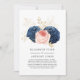 Bröllopsinbjudan med rosé, marinblått och guld i blomsterutförande med elegant typografi som kan anpassas till ditt evenemang. I dessa osäkra tider kan det hända att du måste hålla ett mindre bröllop än vad du ursprungligen planerat. Detta meddelande tar bort det pinsamma och avlastar ditt sinne! Du kan dessutom ge dina gäster möjlighet att delta i en virtuell ceremoni.