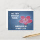 Tacka era bröllopsgäster för deras gåvor och tid med detta prisvärda vykort med en rosa blomma och blått vatten. Anpassa enkelt och snabbt all text för din speciella fest.