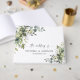 Bröllopsgästbok med grönska. Denna stilrena och eleganta bröllopsinbjudan har vacker handmålad akvarell eukalyptus blomstergrönska. Hitta matchande föremål i samlingen för akvarell eukalyptus blomstergrönska.
