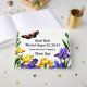 Bröllopsgästbok med Iris, falska guldstjärnor och en persikofjäril. Orden på framsidan kan ändras. Tack till WC för några av elementen i designen.