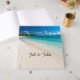 Personlig gästbok med foto med en lugn tropisk strandlandskap perfekt för ett kustbröllopstema som låter vänner och familj signera sina välgångsönskningar till bruden och brudgummen i en vacker högkvalitativt bundet album för att minnas minnen av din speciella dag i många år