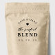 Bröllopsfavorit med kaffe och te med stämpel i vintage stil och elegant design "The Perfect Blend". Personligad med parets namn och bröllopsdatum.