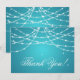 Elegant bröllopsdesign för "Tack-kort" med gnistrande sträng turkos motiv, anpassade namn och datumtext. Imponera på familj och vänner med denna stilrena och moderna design. Helt anpassningsbar! Lätt att använda och lätt att anpassa.