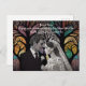 Bröllopspar utskuret i papper på en bakgrund av träd i många färger.