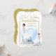 White & Baby-Blue Text: "You are Invited to Attend" "The Wedding of" "Roseanne Fischer & Kenneth M. J. Pears" "To Be Held November 23rd 1991 Wedding Venue Venue Address at 4 pm" "Please See RSVP & Enclosure Card for more Details", with The Party's Names Underlined in thin Baby-Blue, all on an Elegant, All-Gold background to match the Gold on the front of the Card.