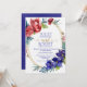 Vattenfärgad blommigt arrangemang av djupblått/lila blommor och med röda blommor med guld oval ram. Djup lila baksida med röda blommor. All type är anpassade.