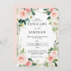 Elegant bröllopsinbjudan med rosa/ persikoton blommor och botaniska motiv från våren med en bukett av mjuka pastellfärgade akvarellrosor, peonior och hortensior i nyanser av rosa, persika och kräm med frodiga gröna blad och eucalyptusblad. Ett modernt designval som är perfekt för vår- och sommarsage rosa bröllop. Vänligen kontakta mig för ytterligare anpassning eller matchande artiklar.