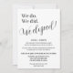bröllopskort. vigselkort i smyg. bröllopsinbjudan. enkel. svart och vit. vi rymde!