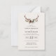 Budgetera Rustic blommigt och stag antlers bröllopsinbjudan. Med vackra vattenfärgsdetaljer. Den här moderna bröllopsinbjudan kommer säkert att sätta stil för din stora dag.