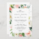 Den här WEDDING-INVITATIONEN innehåller handmålade vattenfärgade blommigtar för rosa och vackra gröna eleganter.
