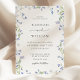 Inbjudan dina gäster i stil med den romantiska blommigtens bröllopsinbjudan, med delikat vattenfärgsfärgad blåa blommor och elegant typografi. Den mjuka botaniska utformningen ramar parets namn är vackert och skapar ett tidlöst och sofistikerat utseende. Perfekt för trädgårdsbröllop, vår firande eller andra evenemang med blommigt eller rustika tema.