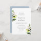 Elegant, botaniskt citron grenar och blommigt blommar, bröllopsinbjudning. Modern och enkel mall för typografi är stil. Kortets baksida samordnar halvljus dammblått färg.