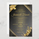 "En elegant och en modern bröllopsinbjudan med ett svart och guld färg-program med ornat gyllene blommigt accents. Den här sofistikerade designen framhäver parets namn i ett snyggt skript, med alla nyckel-händelsedetaljer inramade i en ren och snyggt layout. Perfekt för formellt, glamoröst eller kvällsorienterat bröllop."