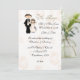 Denna mycket enkla och stilrena ”Bröllopsinbjudan för mottagningen” har en förtjusande vit bakgrund med rosa klockor och brud och brudgum på framsidan med texten ”Ringarna” på framsidan och texten ”Mottagningen” på baksidan. Inbjudan är dubbelsidig med bröllopsdetaljer på framsidan och detaljer om mottagningen på baksidan.