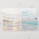 Vacker rosa och persikor färgad solnedgång över turkos akvablå surf på en slät sandstrand bakgrund på en ombordstigningskort biljett resa tema strand bröllop inbjudan som inkluderar ett RSVP-kort som gästerna kan klippa av och returnera. Det finns utrymme på baksidan för information om resor och hotell.