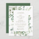 Ett grönt bröllop-format med en grönt löv ram med text i mitten och härlig grönt eucalyptus löv. Du kan ändra formuleringen, texten storlek, färg och typsnitt på denna bröllopsinbjudan.