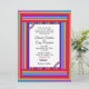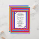 En färgstark inbjudan till en festlig bröllop. Lägg parets första namn på ena sidan med all information om bröllop och all hälsning på motsatt sida. Trippelkontrollera all text.