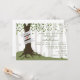 Ett bröllopsinbjudande med en illustration av ett träd med rötter på en kulle med grönt gräs. Trädet har en banderoll insvept runt sig. Personifiera med namn.Rad av träd i bakgrunden. Bladen är gröna. Anpassa texten med detaljer om ditt evenemang. Formuleringen är från brud och brudgum tillsammans med deras familjer.
