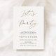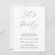 Detta informella bröllopsmeddelande fungerar också som en inbjudan till bröllopsfesten. Dubbelsidig inbjudan till bröllopsfest med "Let's Party" i falskt guldtryck och text som tillkännager det nygifta parets äktenskap och inbjuder gästerna till en avslappnad bröllopsfest. Anpassa med ditt foto på baksidan.