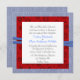 Roligtens westernare temabröllopsinbjudning utförd i rött, vitt och blått grafik. Ett lager med blått denim, rött och svart bandanna stil mönster och ett blått band med dubblan, med en vit textram som översta lagrar. All text är anpassade och redo att anpassa för det westernare temat bröllop. Matchande bröllop-produkter är tillgängliga.