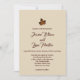 En klassisk brun mapel löv accentuerar den här klassiska bröllopsinbjudningen på en beige bakgrund, skapar den perfekt för ett rustiskt eller fallbröllop. Det visas på grundläggande papper. Jag rekommenderar dock att linan papprare väger och struktur.