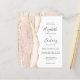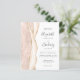 Den vänstra kanten på denna eleganta moderna bröllopsinbjudan har en akvatint agat-kant i nyanser av elfenben och rosafärgat, med falskt guldglitter. Den anpassningsbara texten kombinerar handskrift, kopparstick och kursiv stil i kolgrått på vit bakgrund. Baksidan har en matchande elfenbens- och guldagat-design.