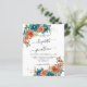 Denna eleganta moderna blommiga bröllopsinbjudan har handmålade akvarellblommor i teal och bränt orange med modernt kalligrafi-skrift. Modern botanisk bröllopsinbjudan i teal och rostorange. Du kan anpassa formuleringen, typsnitt, färg och storlek på framsidan och baksidan av inbjudan. Du är välkommen att kontakta mig för matchande artiklar.