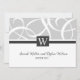 Bröllopsinbjudan visas i grått/vitt med en snurrande utskrift. Visas i en formell layout på framsidan och baksidan. Anpassa den här bröllopsinbjudan genom att klicka på anpassningsknappen, gå till textrutorna och ändra lämplig text till din.