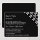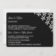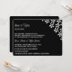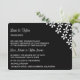 Bröllopsinbjudan visas i en klassisk men modern layout i färg av svart och vitt med en vit blomma mönster. Anpassa den här inbjudan och ändra exempeltexten till din.