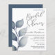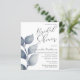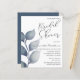 Elegant botanisk design. Denna originella konstverk har en blå akvarell lövverk på en vit bakgrund. Med chic handskriven stil typografi ger denna mall en unik sofistikerad look. Lätt att anpassa med dina egna detaljer.