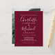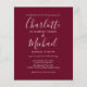 Med din egen foto, signaturstil namn, kan denna eleganta budget burgundy bröllopsinbjudan anpassas med din information i chic bokstavstyp. Designad av Thisisnotme