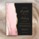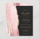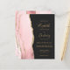 Den vänstra kanten på denna eleganta moderna bröllopsinbjudan har en rosafärgad akvatell agate-border med falskt guldglitter. Den anpassningsbara texten kombinerar guldfärgad handskrift, kopparstick och kursiv stil på en svartaktig bakgrund. Baksidan har en matchande rosé- och guldagat-design.