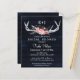 Bröllopsinbjudningar med budgetvänlig marinblå rosafärgad lada, blommande hjorthorn och lantlig charm