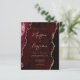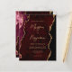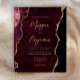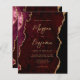 Denna eleganta bröllopsinbjudan har en bakgrundsbild av burgundisk akvarell-agat med falskt guldglitter. Den anpassningsbara texten kombinerar guldmodern handskrift, kopparstick och kursiva teckensnitt. Baksidan har en matchande burgundisk och guld-agat-design.