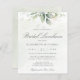 Vacker inbjudan till bridal luncheon med akvarell eukalyptus och guldblad.