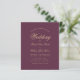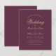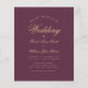 Bröllopsinbjudan med gyllene text på vinröd bakgru