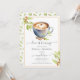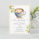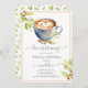 Vacker bröllopsinbjudan med kaffetema. Kaffe koppen har ett skumhjärta i sig! Fantastisk kalligrafi och grönska från kaffeväxt tillför till utseendet. Så underbar design för din kaffe bröllopsfest. Se andra koordinerade produkter i vår butik, Enchanted Finch.