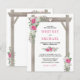 Bröllopsinbjudan med lantlig båge och rosa blommor