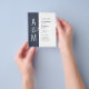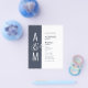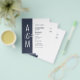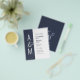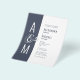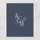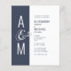 Bröllopsinbjudan på budget. Modern enkel geometrisk bröllopsdesign. Mörk blågrå och vit. Fet och elegant typografi. Brudens och brudgummens monogram och ett stort et-tecken som en symbol för enhet.