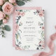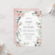 Fira din kärlek med denna bröllopsinbjudan med romantisk rosa ros. Den har en frodig kant av akvarell rosa blommor och mjuka eukalyptusgröna botaniska element mot en ren vit bakgrund. Denna design är idealisk för par som planerar ett tidlöst sommarträdgårdsbröllop eller en elegant utomhusceremoni bland blommorna.