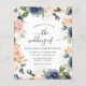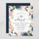 Bröllopsinbjudan med skrivstil i marinblått och ro