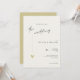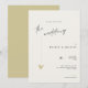 Denna minimala och eleganta bröllopsinbjudan är perfekt för ett modernt bröllop. Designen har en handskriven stil och modern minimalistisk design med ett gyllene hjärta. Du kan ändra namnen, bröllopsplats och datum, och andra detaljer, klicka på «Personalisera».
