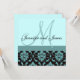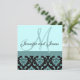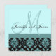 Bröllopsinbjudan, Monogram Blue Damask Inbjudningar